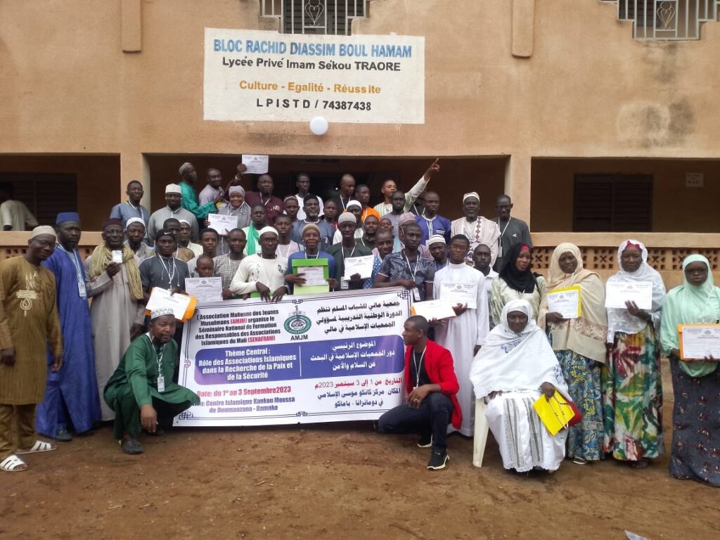 Séminaire de formation des associations islamique (SENAFRAM) organisé par Association malienne des jeunes musulmans (AMJM) c’était du 1er au 03 Septembre 2023 au centre islamique Kankou Moussa à Doumazana qui a vu la participation des participants venus un peu partout au Mali, plus 80 membres étaient présents.